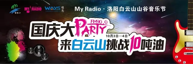 “國(guó)慶大Party 挑戰(zhàn)十噸油”——2016 My Radio加油森呼吸山谷音樂(lè)節(jié),將于10月3日至10月4在洛陽(yáng)白云山景區(qū)震撼上演!為你提供聽覺(jué)上的完美體驗(yàn)——高山流水間盡情的揮灑我們的汗水,盡情享受音樂(lè)的魅力。