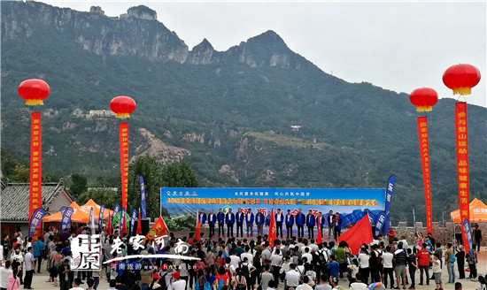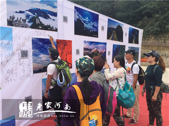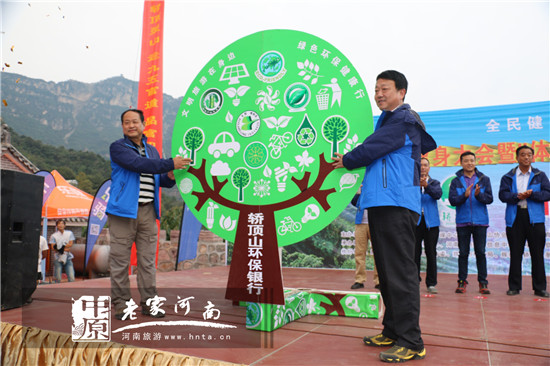 河南省旅游局原副巡視員潘進軍和輝縣市市委常委、南太行管委會主任王建共同啟動“轎頂山環(huán)保銀行”