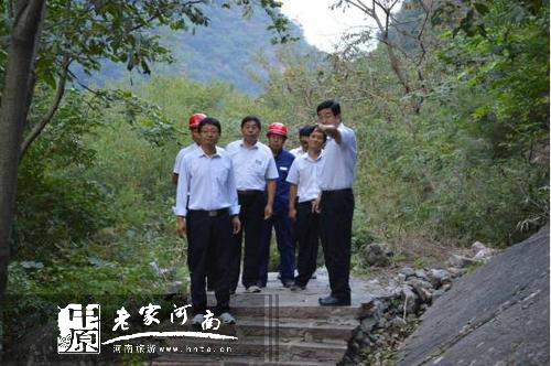 9月22日下午,新鄉(xiāng)南太行旅游有限公司總經(jīng)理王紅昌,到八里溝景區(qū)視察新建觀景步道工程進展情況。