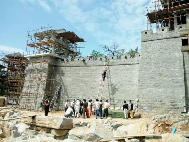 攻城時需要還原出被巨石砸落跌下長梯的場景,圖為演員們正在苦練攻城特技。