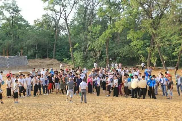 由數(shù)百名演員組成的《三打祝家莊》劇組。