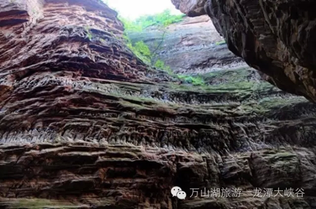 2、平時(shí)對(duì)佛教有所研究的朋友都知道,在我國(guó)許多廟宇里都有五百羅漢,諸如蘇州西園寺和寒山寺、北京的雍和宮碧云寺,鄭州的少林寺等,特別是昆明的筇竹寺,以五百羅漢的塑造工藝高超,在中國(guó)首屈一指而聞名中外。不過這些羅漢都是人工所為,那大家有沒有見過天然形成的五百羅漢?見過的朋友很少吧,來到龍?zhí)洞髰{谷會(huì)讓你大飽眼福,崖壁上分四層整整齊齊排列了五百羅漢,這些羅漢是石英砂巖層內(nèi)柱狀節(jié)理十分發(fā)育,形成了垂直巖層的一根根石柱,砂巖的球狀風(fēng)化作用,使石柱酷似羅漢造型;那為什么又稱它們?yōu)榉鸸饬_漢呢?光線的折射作用,使羅漢身上發(fā)出閃閃金光,猶如佛光顯靈,形成這一處罕見的自然奇觀。