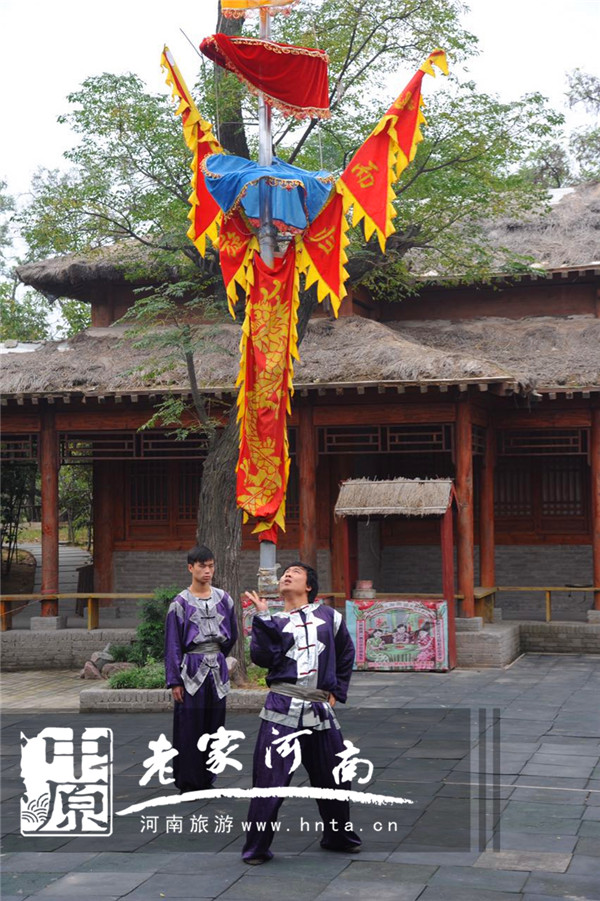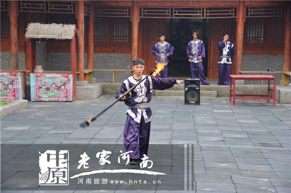 園區(qū)里,除了《三打祝家莊》的實(shí)景演出外,還遍布了各類小場(chǎng)景節(jié)目,民俗雜耍絕技吸引了不少游客駐足觀看。