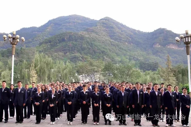 今天早上7點(diǎn)景區(qū)組織全體員工面對莊嚴(yán)的國旗舉行升國旗、唱國歌儀式。