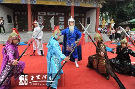 來到天波楊府,看到演員英姿颯爽舞槍弄棒,游客便紛紛要求跟這些扮演楊家忠烈將士的演員們合影留念。