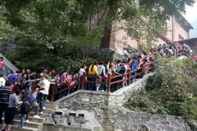 索道檢票處,游客排起了長(zhǎng)長(zhǎng)的隊(duì)伍。