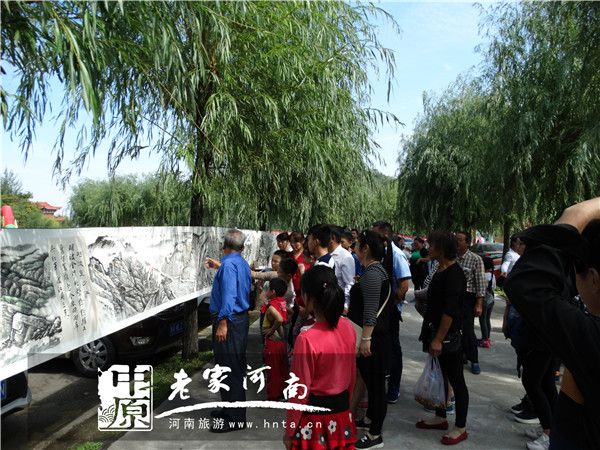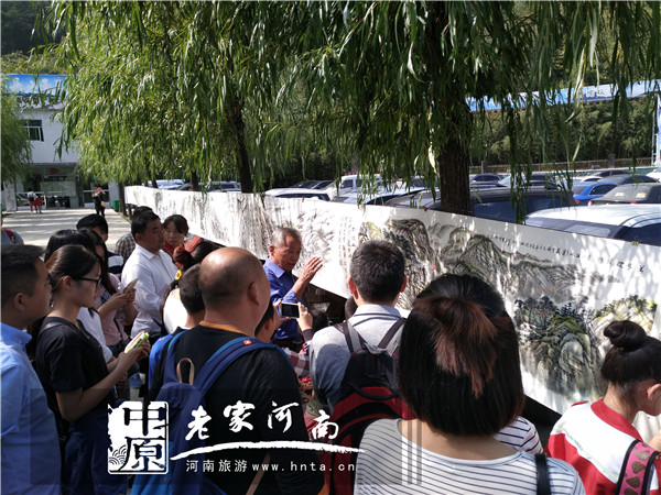 2016年是共和國(guó)67周年,也是長(zhǎng)征勝利80周年。10月1日,河南著名畫家、詩(shī)人李恩章先生帶著他和南陽著名書法家李國(guó)仁先生歷時(shí)8個(gè)月共同創(chuàng)作完成的36米長(zhǎng)卷《紅軍不怕遠(yuǎn)征難》亮相南召五朵山景區(qū),引發(fā)數(shù)千游客圍觀留念。