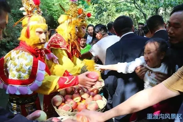 重渡溝景區(qū)結(jié)合水簾仙宮瀑布,推出了“美猴王亮相水簾洞免費(fèi)給萬(wàn)余名上山游客送水果”活動(dòng);