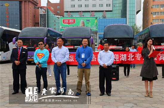 駐馬店市旅游局黨組書記、局長(zhǎng)高峰在歡迎儀式上發(fā)表了熱情洋溢的歡迎辭。他首先向武漢的游客們表示了熱烈歡迎。他說近兩年駐馬店推出的“登山、賞花、沐溫泉”高端休閑度假產(chǎn)品已成為河南省重點(diǎn)推向境內(nèi)外的旅游精品,成為境內(nèi)外游客的新寵。希望今明兩天,游客們?cè)隈v馬店玩的開心,吃的放心,游的舒心,留下美好的印象。