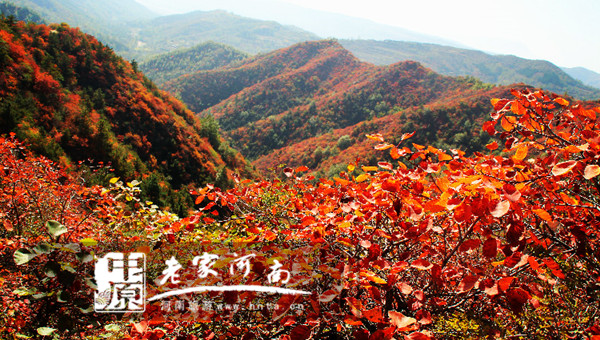 “霜降山水清,王屋十月時(shí)。石泉碧漾漾,巖樹紅離離……”白居易的傳世佳句把濟(jì)源王屋山的動(dòng)人秋色描繪地淋漓盡致。王屋山紅葉主要由黃櫨、槭樹、楓樹等構(gòu)成,每年10月中旬至11月底,一夜秋風(fēng),萬山紅遍,層林盡染。隨著時(shí)節(jié)推移,紅葉畫卷在265平方公里土地上波瀾起伏,讓人入迷,讓人癡醉。初秋之葉,黃綠相間,山林猶如撒金的綠色錦緞,黃葉鮮嫩,綠葉蒼翠,漫山遍野異彩紛呈,變化萬千,斑斕陸離。仲秋之葉,色彩駁雜,山林猶如暖色主調(diào)的巨型地毯,紅、黃、橙、紫調(diào)配出無限多樣的色調(diào),姹紫嫣紅勝似二月花季,熱鬧非凡。深秋之葉,以紅為主,秋葉七彩織錦,煙霞蓋地,五光十色,紫彩紅煙,放眼望去,滿山皆是紅色的海洋,從身邊到遠(yuǎn)山,無處不是融入紅海之中。遠(yuǎn)眺,王屋山體猶如披上了節(jié)日的盛裝,漫山遍野,峰嶺溝壑,都被或橙紅、或艷紅、或淺紅的紅葉包圍,紅得熱烈奔放、動(dòng)人心弦。近觀,那些紅葉和黃葉,當(dāng)陽光側(cè)照,風(fēng)翻起葉背,整棵樹通透鮮嫩欲滴;又或者,片片秋葉翩然如蝶的隨風(fēng)飄落,那美妙的姿態(tài)足以令人神往。