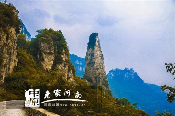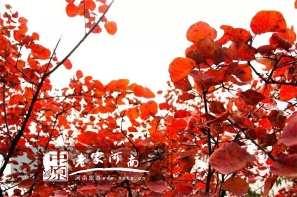 每年10月剛開始入秋,11月葉子紅艷艷,穿過關(guān)山的古木林,沿石階拾級而上,滿山樹葉色彩斑斕,從黃、淺紅到火紅,極富層次,是新鄉(xiāng)南太行最佳秋色觀賞地之一