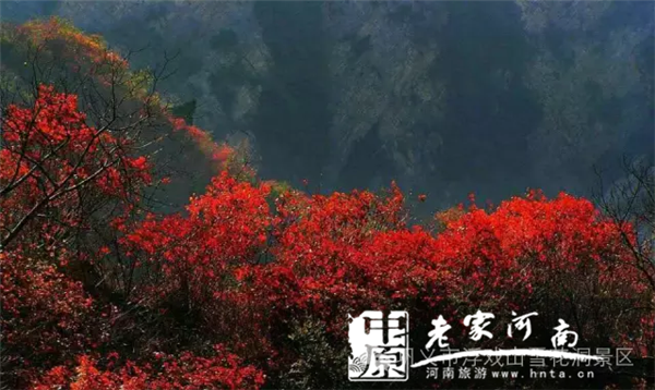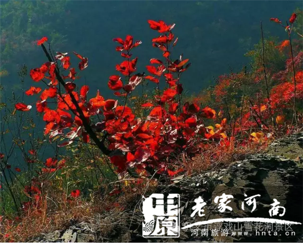 每年10月底至11月,浮戲山雪花洞景區(qū),呈現(xiàn)出漫地紅遍、層林盡染、五彩斑斕的絢麗景觀。紅葉競相斗艷,地被紅葉遮掩,水被紅葉浸染,道被紅葉鋪成,一叢叢,一片片的紅葉延綿幾十多公里,形成令人失魂奪魄的壯美景色“百里云霞”。
