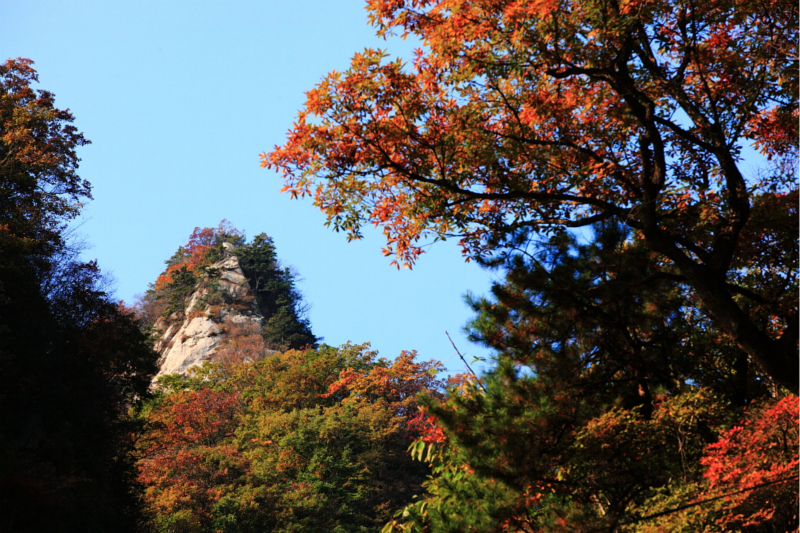 主峰至白牛城觀賞線:紅葉黃葉青松多種彩葉競相斗艷,耀眼奪目,走在山脊看紅葉,更有山谷鋪落霞,千山騰烈焰的景象。乘2800米滑道,滑行于紅葉綠林之間,別有一番風(fēng)味。