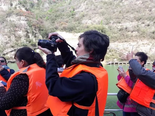 一大早,外國旅游達(dá)人們就到達(dá)了青天河景區(qū),并在景區(qū)門前合影留念。在游船上,看著青天河高峽出平湖的奇觀,加上兩岸丹霞美景,外國旅游達(dá)人們紛紛拿出手機(jī)、相機(jī),興致勃勃地將眼前美景記錄下來。