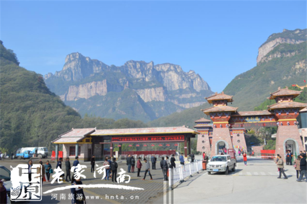 漢唐風(fēng)格的雙重山門在全國山水景區(qū)獨(dú)具特色,遠(yuǎn)映著三級(jí)紅巖絕壁的太行,述說著千年不變的傳說和壯美。