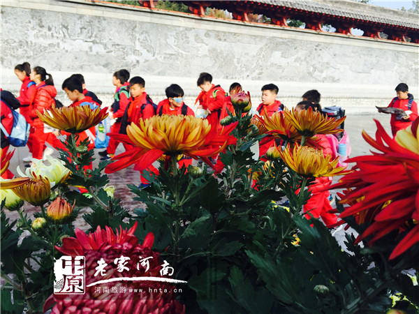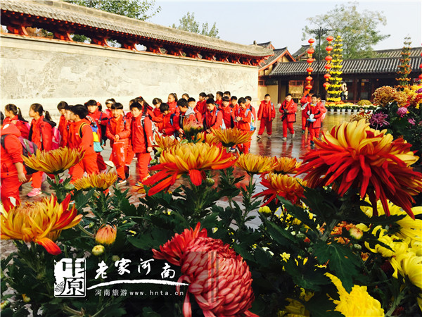 幽靜的市井街道與瑰瑋建筑掩映在斑斕的秋色中,配著周圍的菊花花海,令人宛如置身于童話世界中。絕美的景色不僅吸引了全國(guó)游客來(lái)到清明上河園游玩,也引來(lái)了眾多學(xué)生團(tuán)隊(duì)來(lái)到清明上河園秋游、賞菊,找尋最有趣的課堂,收獲不一樣的知識(shí)。
