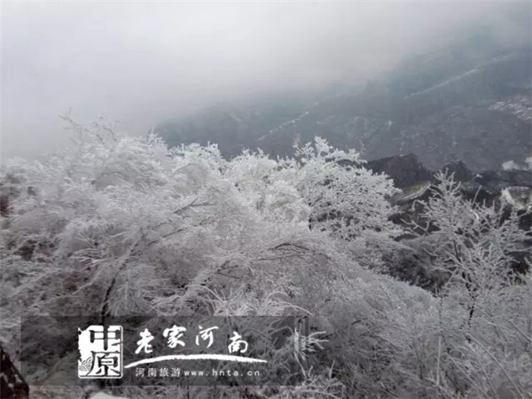 春書夏花兩相燦,秋葉冬松不畏寒。冬日里晶瑩的霧凇,讓轎頂山盡顯它的天姿玉色……