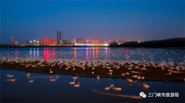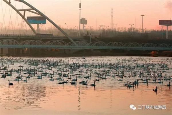 三門峽黃河濕地,特別是三門峽天鵝湖,生態(tài)環(huán)境適合白天鵝生存,為萬(wàn)只白天鵝云集棲息提供了自然條件。2015年,三門峽天鵝湖創(chuàng)造了野生大天鵝黃河流域自然繁育成功6只天鵝寶寶的奇跡。冬日里,薄霧迷離、水光瀲滟的1800畝天鵝湖水面,5000余只白天鵝水中嬉戲,輕歌低回問(wèn)夕陽(yáng),悠閑舒適舞翩躚。而每年冬天到整個(gè)三門峽黃河庫(kù)區(qū)濕地越冬的天鵝達(dá)上萬(wàn)只,占全國(guó)越冬白天鵝數(shù)量的一半左右。