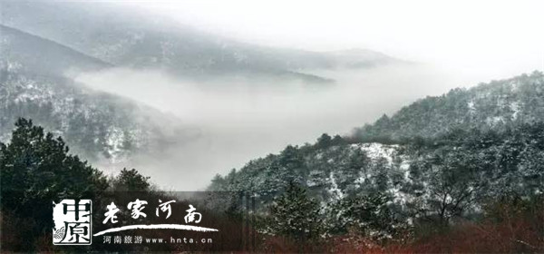 高山與云海似乎是一對黃金搭檔,二者必定相隨,而青天河與其云海,絕對是相得益彰的一組。青天河靳家?guī)X游覽區(qū)因其海拔較高,區(qū)內(nèi)崇山峻嶺、峰巒疊嶂,每當雨雪降臨之時便可以觀賞到絢麗的云海,透過層層阻礙,朦朧的看到嶙峋的怪石盤桓山間,更是增添了極大的趣味。冬季降雪后常伴隨著云海奇觀,雪景、云景、山景、河流、登高之樂,這五者相互交融,是領會到了青天河至美。