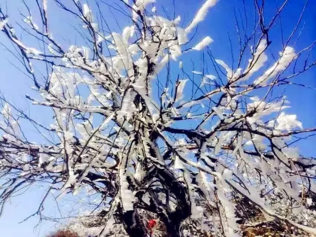 冬霧彌漫,霧散之后,樹枝上凝著一層厚厚的白霜,像是一樹潔白的秋菊。