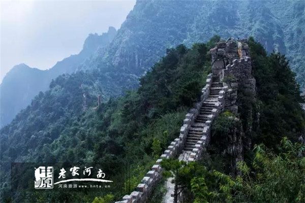 轎頂山的龍脈長(zhǎng)城比八達(dá)嶺長(zhǎng)城要險(xiǎn)峻的多、有意思的多,它盤旋在轎頂山巔,為趙、魏龍脈長(zhǎng)城之遺址,像一條盤旋在太行山脊上的巨龍,橫跨豫、晉兩省,由東北方向的林縣昂首奔來,挾帶著燕趙之地慷慨激烈之氣勢(shì),經(jīng)過趙國宰相藺相如的藺家寨,蟠結(jié)屈曲于侯兆川的轎頂山、鐵打寨;