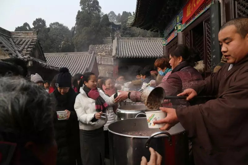 每逢臘月初八,月山寺都會舉行隆重的臘八施粥祈;顒,紀念釋迦牟尼佛成道,謹記佛陀的慈悲的精神,弘揚布施、給與、助人的慈善精神。
