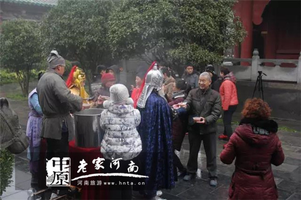 一早,楊府景區(qū)門口就圍滿了游客,精彩演出過后,楊令公、佘太君攜眾將士為游客朋友贈送楊府特制臘八粥食材~
