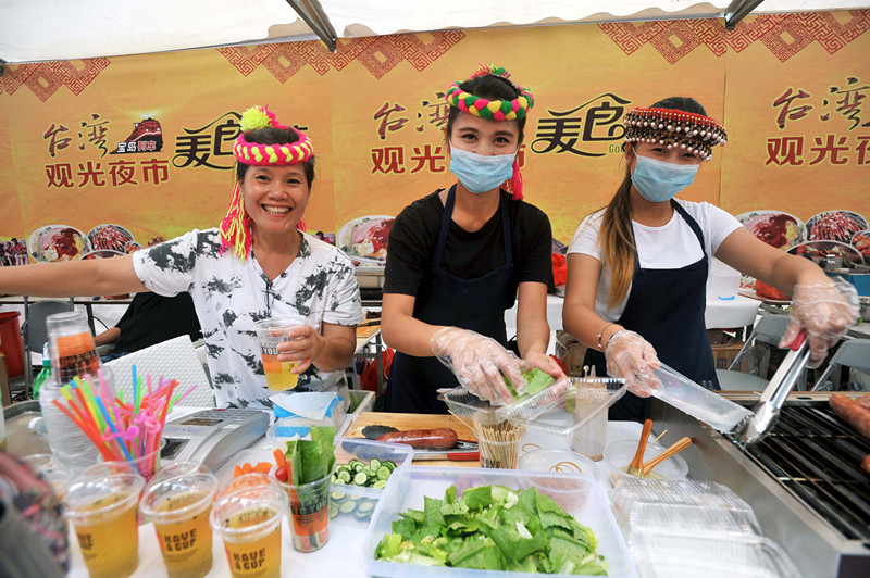 在國(guó)際美食展區(qū),來(lái)自臺(tái)灣的阿美族展商在推銷美食