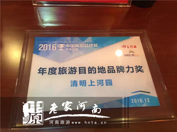5大河報(bào)聯(lián)合“中國(guó)城市第一媒體旅游聯(lián)盟”主辦的“2016中國(guó)旅游總評(píng)榜·河南分榜”中,清明上河園景區(qū)榮獲“年度旅游目的地品牌力獎(jiǎng)”。