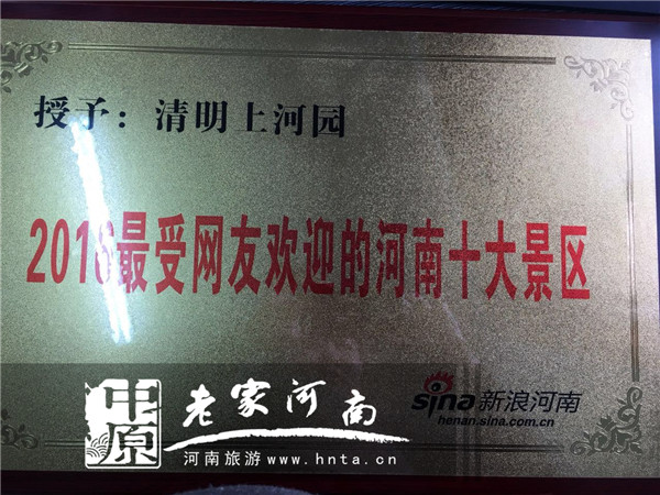 9新浪河南在網(wǎng)絡(luò)發(fā)起投票,授予清明上河園“2016最受網(wǎng)友歡迎的河南十大景區(qū)”榮譽(yù)稱號(hào)。