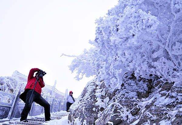 大寒至,春節(jié)近,洛陽白云山度假區(qū)悄悄的舊顏換新裝,巨大的冰瀑、奇異的冰柱、多姿的冰掛,令人目不暇接,漫山遍野的霧凇、雪淞、霧草、霧石,宛如一個珊瑚盛開的世界。