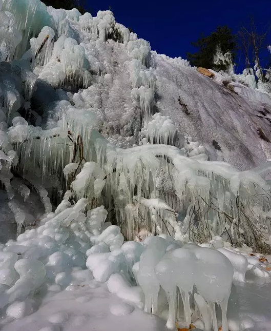 洛陽白云山是國家5A級旅游景區(qū)、世界地質(zhì)公園、國家森林公園,春節(jié)時期的白云山,巨大的冰瀑、奇異的冰柱、多姿的冰掛令人目不暇接,漫山遍野的霧凇、雪淞、霧草、霧石,宛如一個珊瑚盛開的世界。人們在海拔2216米的玉皇頂?shù)歉哌h(yuǎn)眺,祝事業(yè)如玉皇頂上的磐石一飛沖天;在愛情谷漫步徜徉,祝愿愛情如情人谷的溪流纏纏綿綿;在九龍瀑布遙望冰瀑,祝心情順順暢暢,快樂如九龍瀑的泉水源源不斷……