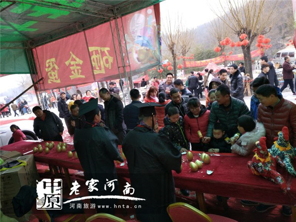 南召五朵山景區(qū)是與武當(dāng)山齊名的道教文化圣地。過年期間,五朵山第17屆春節(jié)民俗廟會(huì)拉開大幕。景區(qū)挖掘深厚的祈福文化,推出了“砸金蛋,中大獎(jiǎng)”活動(dòng),吸引了大量游客參與。
