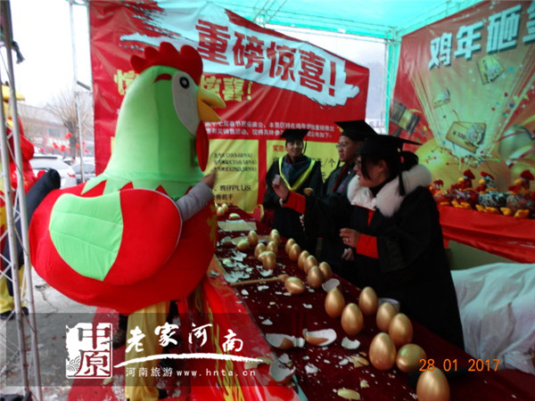 現(xiàn)場的6輛汽車大獎(jiǎng)更是點(diǎn)燃了游客熱情,很多年輕人紛紛上前砸金蛋,博取新年彩頭。