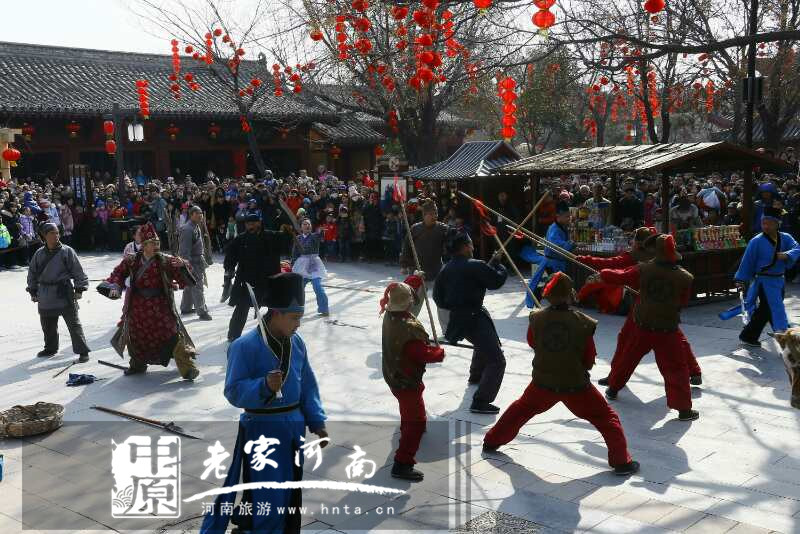 園區(qū)三步一景,五部一畫,各類的情景表演,民俗雜耍,就在身邊開演。這不正趕上梁山好漢劫囚車,這近在咫尺的演出給游客帶來了身臨其境的體驗。