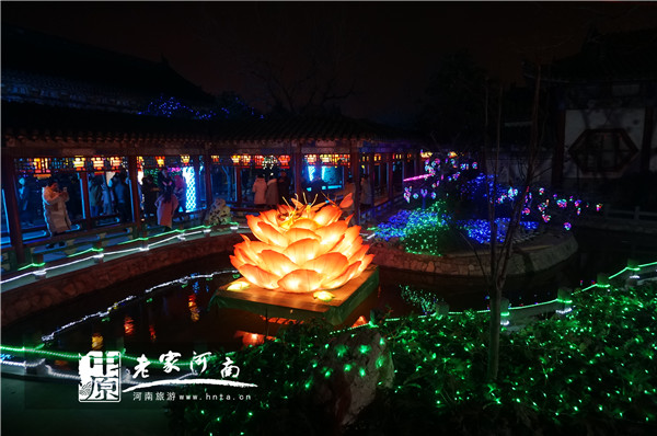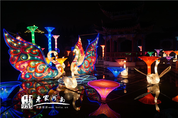 據(jù)天波楊府主任李漫潔介紹,天波楊府燈會按照開封宋都古城文化產(chǎn)業(yè)園區(qū)工作部署,以“喜慶熱烈、幸福吉祥”為主題,突出“楊府家宅”年節(jié)氛圍,并在占地面積近百畝的“楊府家宅”沿殿前屋后、湖畔徑旁、廊橋庭院以及花樹石邊等處,精心布展了呈現(xiàn)多重文化特色的大中型燈組24組和各色燈籠燈飾萬余盞,使偌大的“楊家府宅”如同光焰四射、如夢如幻的“光影世界”。游客步入景區(qū),仿佛“賓至如歸”,在濃濃的“家味兒”和“年味兒”中漫步璀璨“燈海”,別有一番融融的情趣。