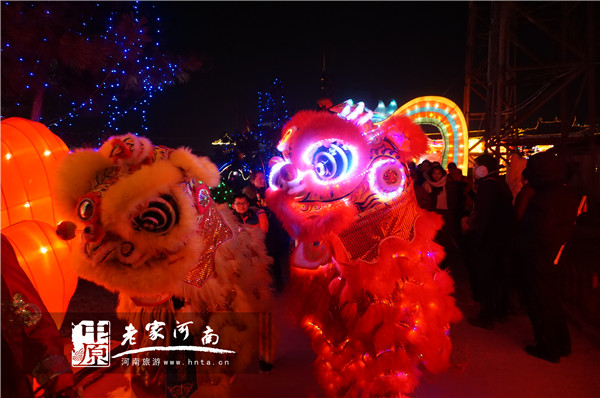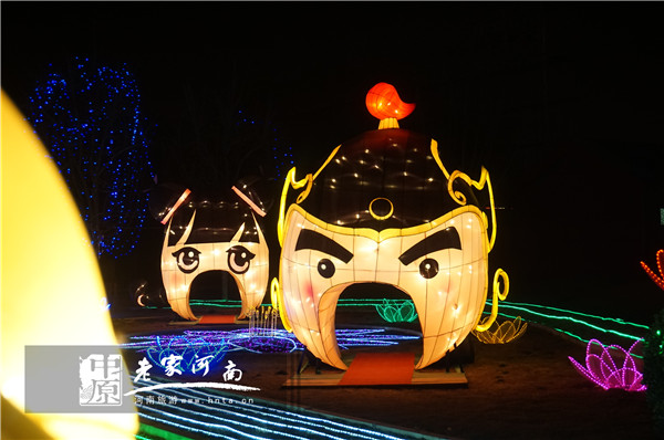 造型新穎、寓意豐富的燈組不勝枚舉。諸如展示北宋楊家名將的穆桂英、楊宗保、楊排風(fēng)卡通形象的《萌將迎春》,利用8盞旋轉(zhuǎn)宮燈展示楊家將人物年畫的《忠孝仁義》,以“嫦娥舞袖”“花好月圓”為畫面內(nèi)容的《闔家歡樂》,以及《金雞報(bào)曉》《聚寶納!贰锻郁[春》《吉祥富貴》等,均造型各異、美不勝收。