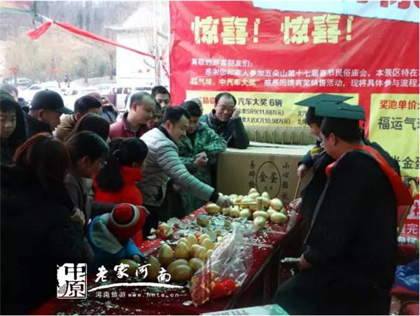過(guò)年期間,五朵山第17屆春節(jié)民俗廟會(huì)拉開(kāi)大幕。景區(qū)挖掘深厚的祈福文化,推出了“砸金蛋,中大獎(jiǎng)”活動(dòng),吸引了大量游客參與。