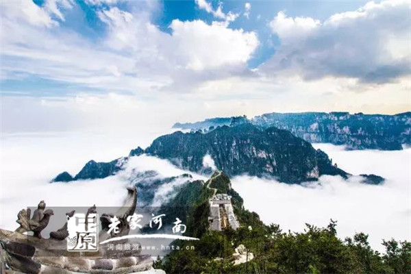 轎頂山位于河南省輝縣市境內(nèi),距新鄉(xiāng)市55公里,北接萬(wàn)仙山,西連王莽嶺,南鄰回龍?zhí)旖缟剑瑬|望侯兆川。轎頂山是南太行精華之所在,海拔1488米,形似轎頂,狀若房屋。“轎頂山、御馬峰、華蓋石天然構(gòu)成一幅玉帝行轅圖”。