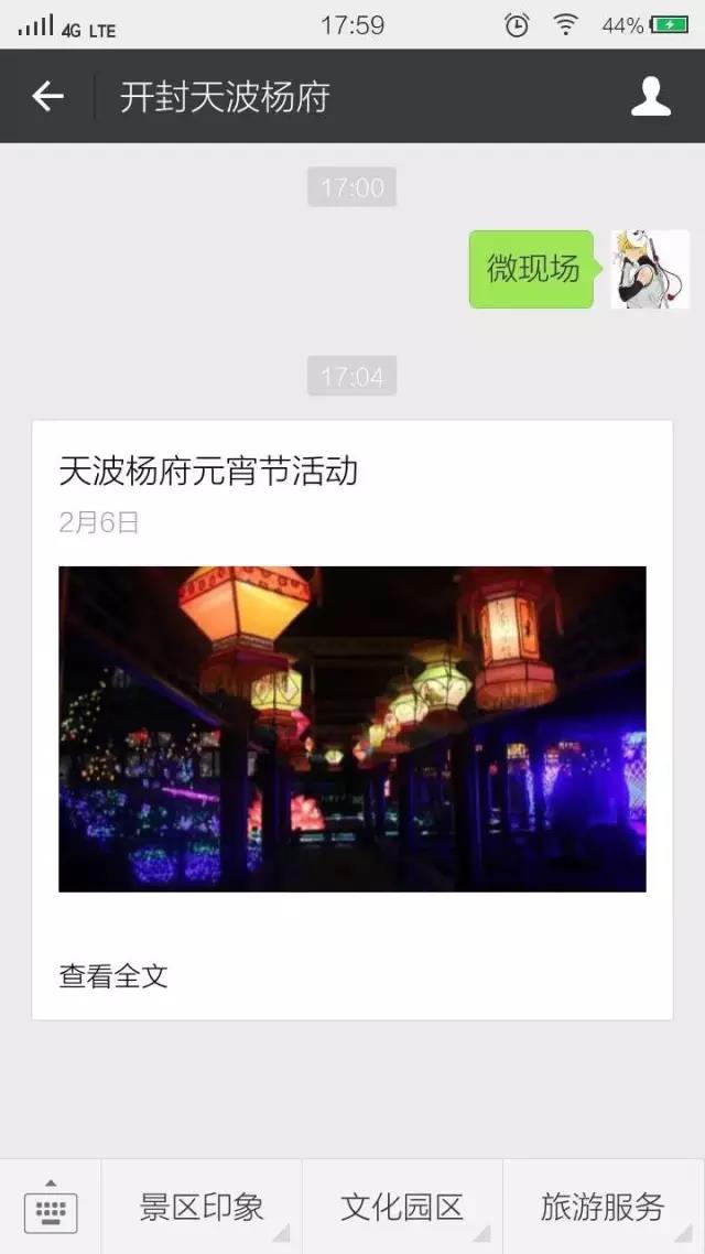 2、進入天波楊府微信服務號平臺,回復“微現(xiàn)場”三字。