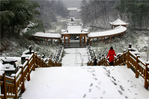 2017新春伊始,乍暖還寒。北國江南,中原凈土——河南西九華,遍山的景象已是蒼翠滿目,難得是人群不多不少,恰到好處。忽然到來的一場春雪,讓整個景區(qū)披上了銀裝,天地立刻改變?nèi)蓊仭Q矍暗囊磺腥闪算y白色的,地上、房上、樹上、山上,無處不有雪的蹤影。在這樣的潔白空間里,會讓您產(chǎn)生種種遐想,好像這雪是帶著某種使命,突然來到人間似的。