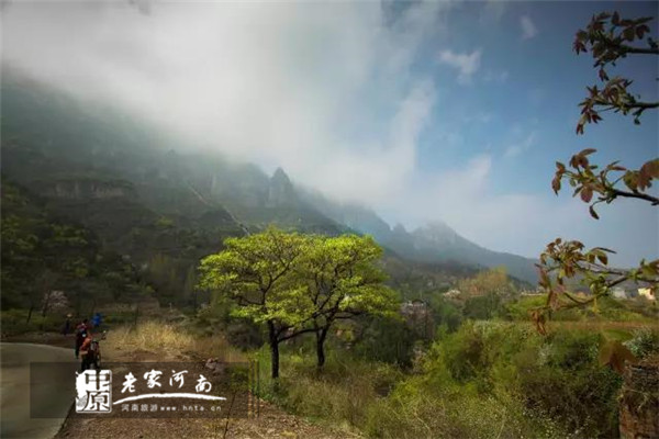 春之歸處,應猶在此。尋春轎頂,歡樂開懷。驅車遠望之處,轎頂山頂平而寬闊,四周懸?guī)r絕壁,形如轎頂;近觀之景,轎頂山橫臥于太行南麓,群山環(huán)抱紅巖絕壁,巍峨秀美。