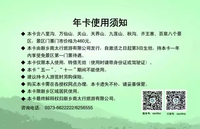 新鄉(xiāng)南太行年卡