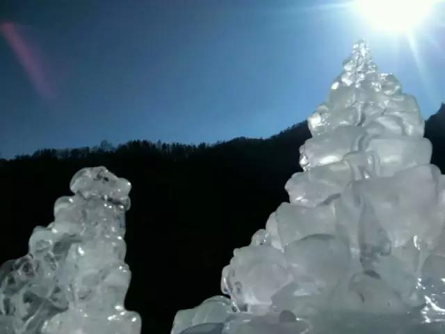 春天雖然已經(jīng)來臨,但洛陽白云山由于地勢海拔原因,溫度相對較低。背陰的地方冰雪尚在,晶瑩剔透的冰雕、冰掛、冰瀑、雪淞等依然美麗。向陽的地方,花草樹木都在萌芽,茱萸也含苞待放,整個景象美極了。一邊是冬天,一邊是春天,應(yīng)了那句老話:“一山有四季,十里不同天”。