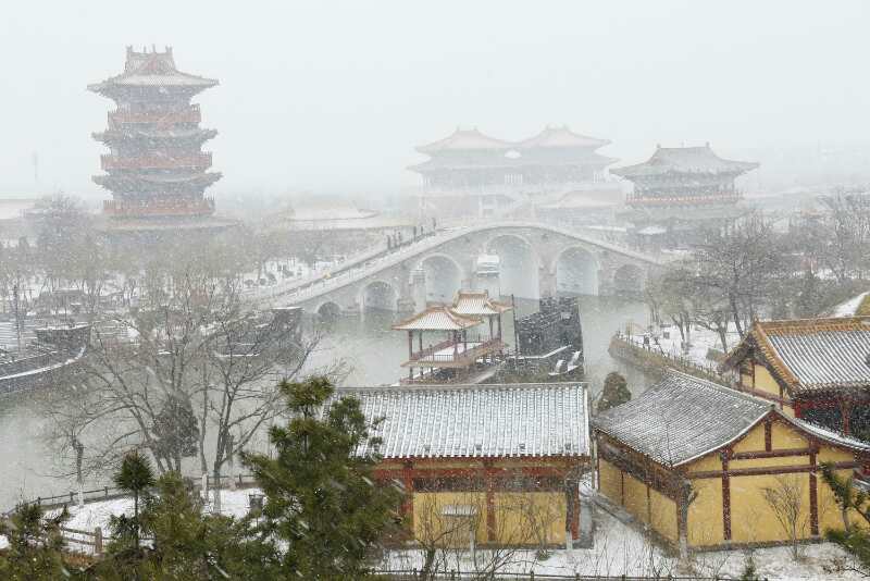 不是每個人都如此幸運(yùn),欣賞銀裝素裹的清明上河園,如瓊樓玉宇,眼下白茫茫一片。