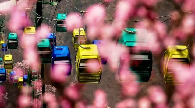 在青天河賞桃花最壯觀的方式要屬乘坐纜車了。身在萬花叢中是一種欣喜,而坐在纜車上,穿越在朵朵紅云之上,又是另一種陶醉。隨著纜車緩緩上行,眼前的桃花面積越來越大、越來越艷,極目遠(yuǎn)眺,還能將整個(gè)青天河景區(qū)的景色盡收眼底,讓人心曠神怡、春風(fēng)滿面!