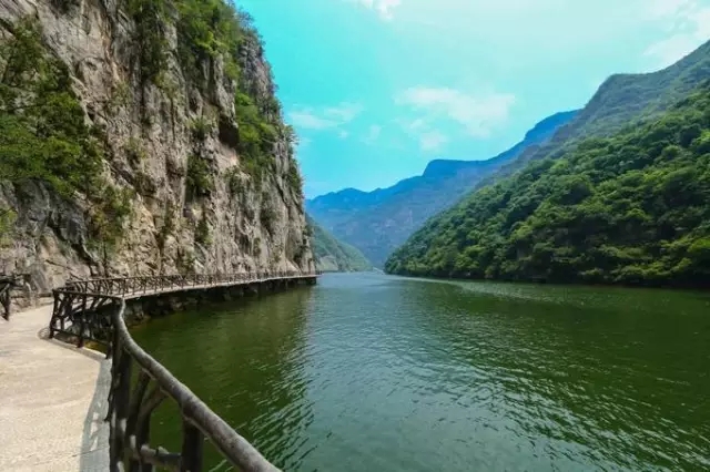 青天河濱水棧道全長8.6公里,這里碧波蕩漾,嫵媚婉約,水隨山勢(shì),百轉(zhuǎn)千回。漫步濱水棧道可以觀賞到中原地區(qū)獨(dú)一無二的高山峽谷濕地景觀,每到春暖花開時(shí)節(jié),選擇漫步濱水棧道健步吸氧的游客絡(luò)繹不絕,全方位感受桃花之芬芳、春韻之熱烈。隔湖遙望桃花朵朵開,如云霞、如胭脂,飄忽變幻,山水間蕩漾著心醉的顏色!這樣的美景唯有獨(dú)自信步,才能感觸山野的幽靜,漸漸化入如癡如夢(mèng)的境界。