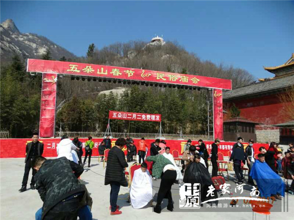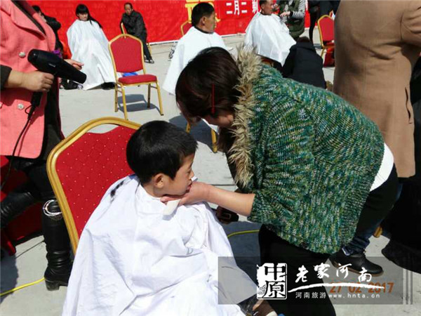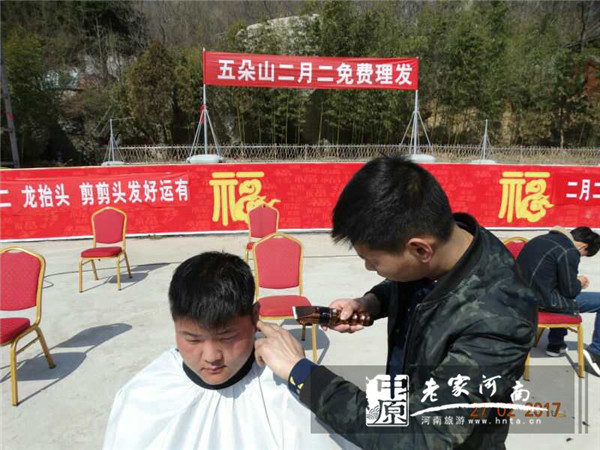 2月27日是農(nóng)歷二月初二,這一天在北方叫做春龍節(jié),在南方叫做花朝節(jié)。民間有二月二龍?zhí)ь^日的說(shuō)法,并且有理發(fā)的習(xí)俗。在河南五朵山景區(qū),今天來(lái)了一批特殊的志愿者,他們就是來(lái)自南陽(yáng)市博藝美容美發(fā)專(zhuān)業(yè)學(xué)校的50名理發(fā)師。適逢五朵山第17屆春節(jié)民俗廟會(huì)最后一天,他們用精湛的理發(fā)技術(shù)和耐心的服務(wù)態(tài)度,為今天來(lái)到五朵山景區(qū)的游客們提供了理發(fā)服務(wù),滿(mǎn)足了游客們“二月二理龍頭”的民俗需求,使游客們收獲了一份意外之喜,也感受到了五朵山春節(jié)廟會(huì)的濃濃民俗味。來(lái)自河南、湖北、安徽等全國(guó)各地市的游客紛紛對(duì)他們挑起大拇指。