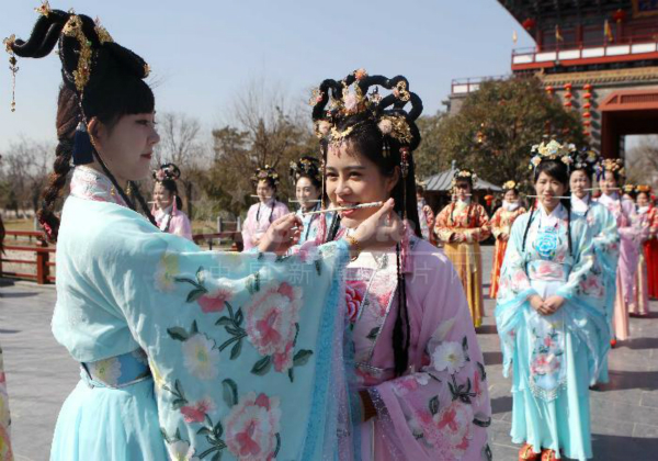 3月2日,河南開封清明上河園,“后宮佳麗”們現(xiàn)身現(xiàn)實(shí)版的《清明上河圖》中,咬筷子苦練微笑。據(jù)了解,為進(jìn)一步提升服務(wù)水平,做好3月10日2017《大宋東京夢華》的公演,這些平日身著宋裝的“后宮佳麗”導(dǎo)游們,以苦練咬筷子的方式來表現(xiàn)“8顆牙式微笑”服務(wù)。