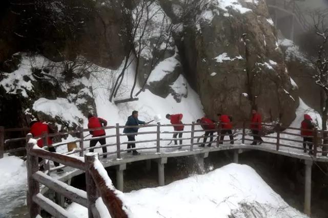 目前,老君山景區(qū)已全面清理游覽主線路積雪并保持暢通。